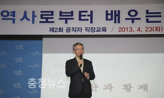 대덕구(구청장 정용기)는 23일 구청 대강당에서 김형오 전 국회의장을 초청해 ‘역사로부터 배우는 리더십’을 주제로 공직자 직장교육을 실시했다.