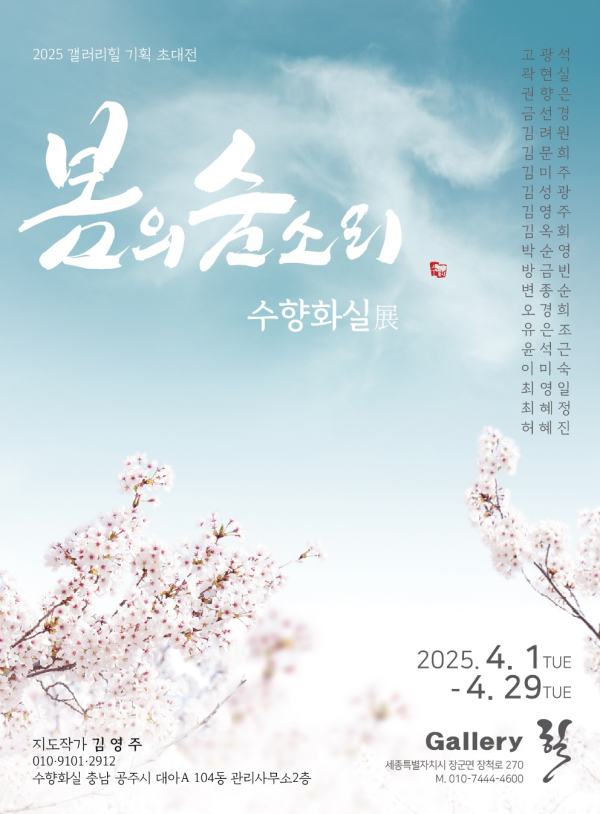 [충청뉴스 최형순 기자] 공주시 수향화실(대표 김영주 작가)은 4월 1일, 세종시 장군면에 위치한 갤러리 힐 초대로 봄맞이 회원 작품 전시회를 개최한다.