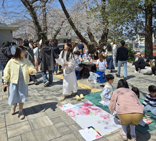 벚꽃이 아름답게 피어난 충남 역사문화박물관에서 특별한 그림 그리기 행사 개최