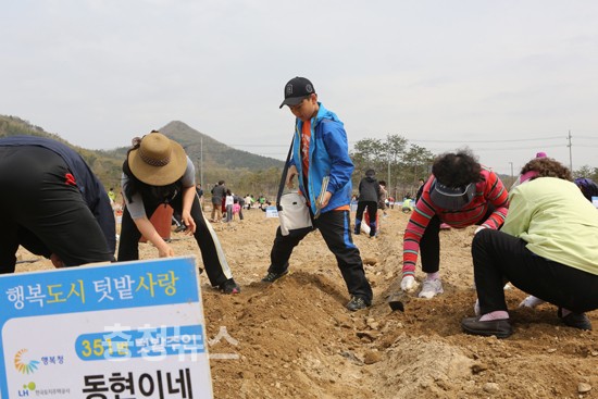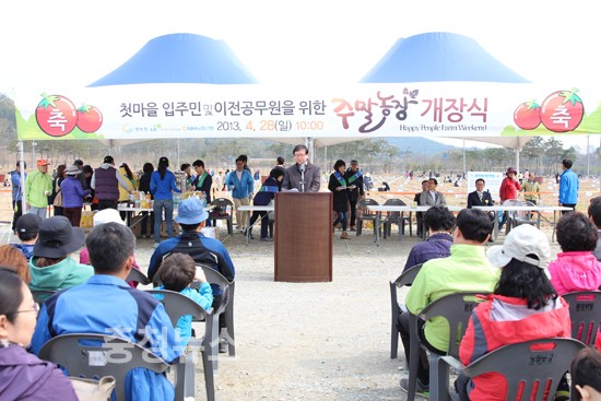 정부세종청사 이전공무원과 행복도시 입주민의 전원생활 체험을 위해 28일 주말농장이 개장했다. 행정중심복합도시건철청(청장 이충재)은 28일 오전 10시 첫마을 주민과 이전공무원 가족 등 2000여명이 참여한 가운데 성황리에 주말농장 개장식을 갖고 본격적인 운영에 들어갔다고 밝혔다.
