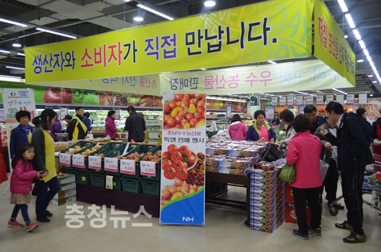 농협 충남지역본부(본부장 김병문)는 지역 농산물 판로확대로 농업인의 소득증대와 소비자 물가안정을 위해 안영동 농협대전유통 (농산물 유통센터)에서 농산물 산지직송 직거래 행사를 지난 27일과 28일 이틀에 걸쳐 실시해 소비자들로부터 큰 호응을 얻었다.