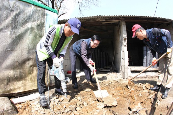 이날 집수리 현장은 괴곡동에 거주하는 92세 노인의 집으로 욕실이 없고 야외에 수도시설만 있어 어르신은 겨울뿐만 아니라 일상생활에도 큰 불편을 겪었고 이날 집수리를 통해 불편이 해소됐다.
