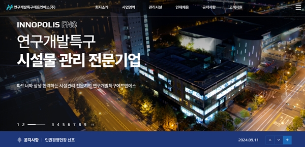 연구개발특구에프엔에스(주) 홈페이지