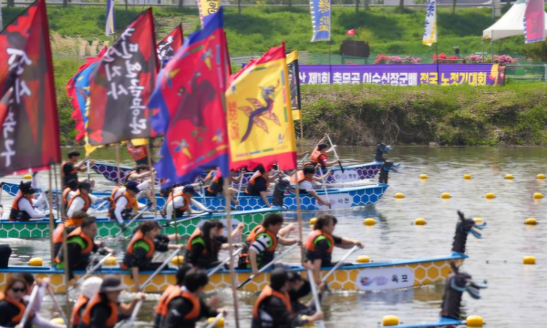 곡교천에선 '제2회 충무공 이순신장군배 전국 노젓기대회'를 진행한다.