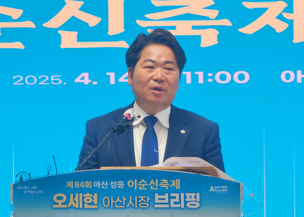 오 시장은 14일 시청 상황실에서 '제64회 아산 성웅 이순신축제' 브리핑에 앞서 "아산시장 재선거를 통해 제게 다시 시정을 맡겨주신 시민 여러분께 깊은 감사와 존경의 마음을 전한다"며 이같이 밝혔다.