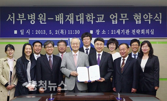 간호학과 학생들 임상실습 골자로 배재대학교와 서부병원은 2일 대학 21세기관 회의실에서 김영호 총장(왼쪽 다섯 번째)과 오수정 병원장(왼쪽 네 번째) 등 양 기관 관계자들이 참석한 가운데 간호학과 학생들의 임상실습 등을 골자로 하는 업무협약을 체결했다. ▲ 서부병원-배재대학교 업무협약식 저작권자 © 충청뉴스 무단전재 및 재배포 금지 최온유 기자 다른기사 보기 기사가 마음에 드셨나요? 충청뉴스 좋은 기사 후원하기 1,000원 3,000원 5,000원 10,000원 30,000원 50,000원 직접입력 비회원 약관동의하기 ※ 소중한 후원금은 더 좋은 기사를 만드는데 쓰겠습니다.