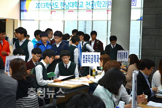 한남대학교는 3일 오전 56주년기념관과 캠퍼스 일원에서 대전지역 고교생 1,200여명이 참석한 가운데, ‘2013학년도 한남대학교 전공(학과) 체험박람회’를 개최했다고 밝혔다.