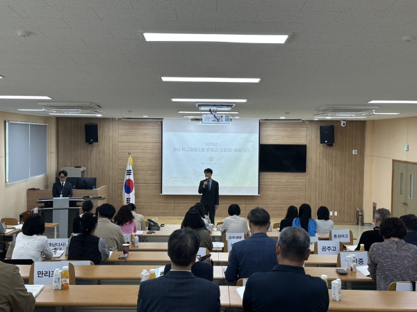 [충청뉴스 박영환 기자] 충남교육청(교육감 김지철)은 24일 학교협동조합 운영학교의 담당자와 조합원 50여 명을 대상으로 ‘학교와 지역의 상생’을 주제로 한 역량 강화 배움자리를 충남교육청교육연수원에서 개최했다고 밝혔다.