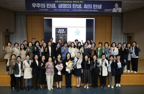 [충청뉴스 최형순 기자] 세종여성기업인협의회(회장 이연재)는 23일 고려대학교 농심국제관 국제회의실에서 박영선 전 중소벤처기업부 장관을 초청하여 '우주의 탄생, 생명의 탄생, AI의 탄생'을 주제로 특별강연회를 성공적으로 개최했다.