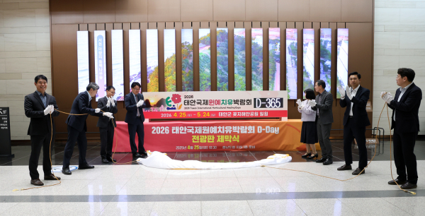 [충청뉴스 박영환 기자] 태안국제원예치유박람회조직위원회는 25일 도청에서 ‘2026 태안국제원예치유박람회(이하 박람회)’의 성공 개최를 위해 결의를 다지는 개최일(D-day) 전광판 제막식을 개최했다고 전했다.