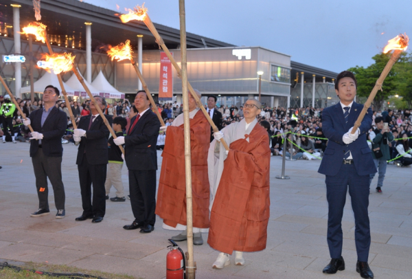 저녁 7시 30분부터 약 2시간 동안 은은하게 타오른 1만여 개의 낙화봉은 밤하늘을 아름다운 불꽃으로 수놓았으며, 방문객들은 타닥타닥 조용히 타는 불꽃을 바라보며 액운을 쫓고 행복과 안녕을 기원하는 낙화의 의미를 되새기는 시간을 가졌다.