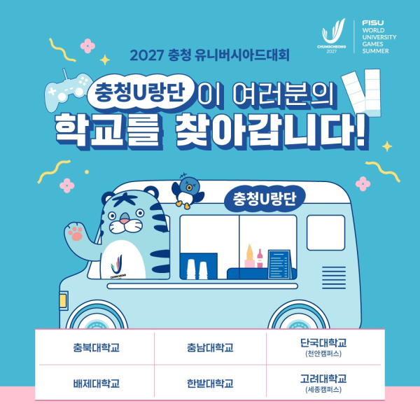 [충청뉴스 최형순 기자] 2027 충청 유니버시아드대회 조직위원회(위원장 강창희, 이하 조직위)가 전 세계 대학생들의 스포츠 축제인 ‘2027 충청 U대회’를 더욱 가깝게 알리고, 대학생들의 참여와 관심을 높이기 위해 발 벗고 나섰다.