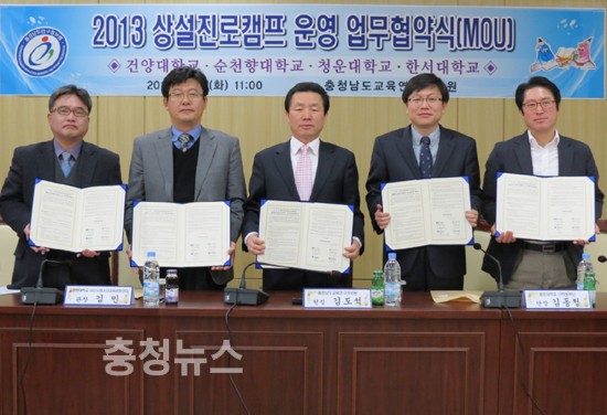 충남교육연구정보원(원장 김도석)은 지난달 9일 상설진로캠프 운영에 따른 업무협약식을 체결한 데 이어 한 달여의 준비기간을 거쳐 금주 토요일부터 11월 말까지 권역별 4개 대학에서 각각 상설진로캠프 운영한다고 밝혔다.