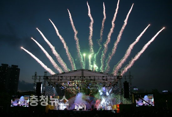 유성온천의 역사를 표현한 ‘천년학의 비상’ 공연과 YB, 김제동, 장윤정 등의 축하공연, 파노라마 불꽃쇼가 진행된 10일 개막식에는 관람객들이 메인무대가 있는 계룡스파텔 잔디광장은 물론 축제 행사장 부스를 입추의 여지없이 가득 메웠다.