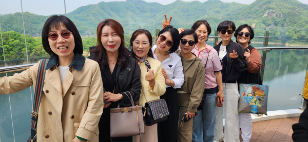 옥정호 출렁다리에서 대전시낭송예술인 협회 회원들