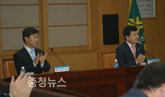 유한식 시장은 "첫째 조건은 내부의 결속이다. 세종시가 출범할 수 있었던 것도 자연발생적으로 충청인들께서 똘똘뭉쳐서 세종시 지켜주시고 언론에서 세종시를 지켜줬기 때문"이라며 "앞으로 우리 충청권 현안 해결을 위해서 협의회가 구성됐으니까 똘똘 뭉쳐 해결하는데 노력했으면 좋겠다. 세종시에서도 지역 현안해결위해 최선을 다하도록 하겠다"고 약속했다.
