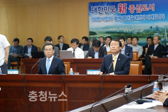충청권 현안 해결 등 공조를 위한 시도당위원장, 시도지사 협의회의가 14일 오후 대전시청 대회의실에서 민주당출신 도지사들이 불참해 썰렁한 분위기에서 열렸다.