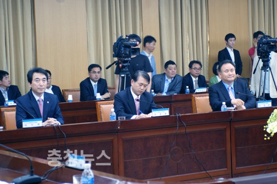 이날 행사는 민주당 이상민 위원장의 주선으로 이뤄졌는데 민주당소속 이시종 충북지사, 안희정 충남지사가 빠진 가운데 새누리당 염홍철 대전시장과 유한식 세종특별자치시장과 민주당은 충남, 충북 부단체장 등이 대신 참석했다.
