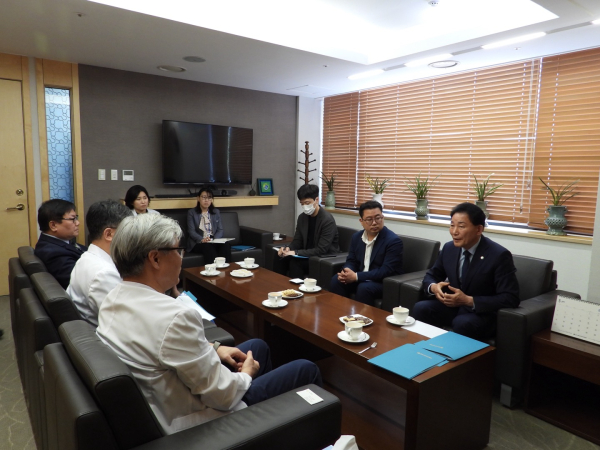 이어 박 의원은 충남대병원 암병원 신축 사업에 대해서도 "충남대병원에 대한 중장기 투자가 매우 중요하다는 공감대가 형성되어 있다"면서 "충남대병원의 자부담을 줄이기 위해 다양한 기금 조달 방안을 함께 모색하겠다"고 했다.