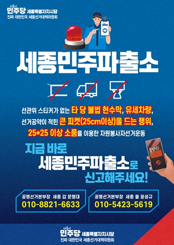 더불어민주당 세종선거대책위원회는 "끝까지 원칙을 지키고, 불법과 폭력, 왜곡과 조작을 단호히 거부하며, 유권자와 함께 공정하고 품격 있는 선거 문화를 반드시 실현해 나갈 것"이라고 밝혔다.