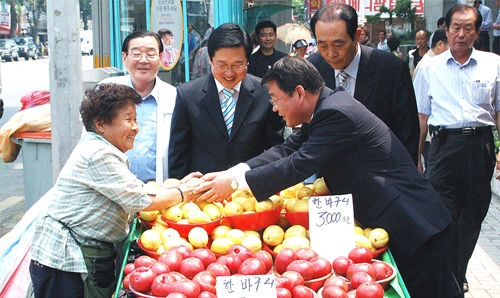 박성효 당선자, 중앙시장서 성원에 답례 박성효 대전광역시장 당선자는 6월 1일 오후 1시경 한나라당 이장우 동구청장 당선자와 함께 대전중앙시장을 방문해 상인들과 일일이 악수를 나누며 성원에 대한 감사의 뜻을 전했다. 이날 상인들은 박 당선자의 손을 잡으며 축하를 해주는 한편 앞으로 대전시장으로써 시정을 잘 이끌어줄 것을 당부하기도 했다. 저작권자 © 충청뉴스 무단전재 및 재배포 금지 홍세희 기자 다른기사 보기 기사가 마음에 드셨나요? 충청뉴스 좋은 기사 후원하기 1,000원 3,000원 5,000원 10,000원 30,000원 50,000원 직접입력 비회원 약관동의하기 ※ 소중한 후원금은 더 좋은 기사를 만드는데 쓰겠습니다.