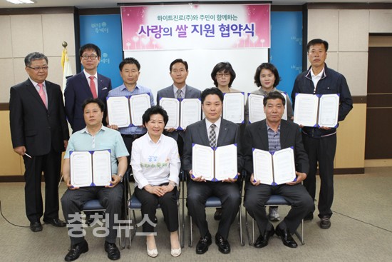 하이트진로(대전영업본부 본부장 이의성)는 20일 법2동 주민센터회의실에서 조영옥 법 2동동장과 8개 법 2동 자생단체장들이 참석한 가운데 ‘사랑의 쌀 지원 협약식’을 가졌다.