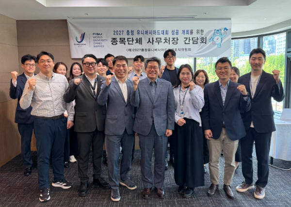 [충청뉴스 최형순 기자]  2027 충청 유니버시아드대회 조직위원회(위원장 강창희, 이하 조직위)는 오늘 서울 올림픽파크텔 로마홀에서 '종목단체 사무처장 간담회'를 성공적으로 개최하며 대회 경기 운영의 실무 협력을 한층 강화했다.