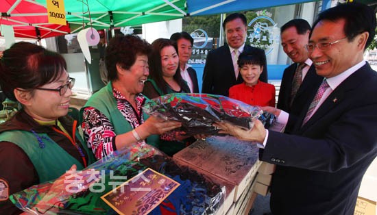 대전 동구 홍도동 새마을부녀회(회장 채기모)가 21일 홍도치안센터에서 불우이웃돕기 성금 모금을 위한 사랑 나눔 바자회 행사를 개최했다.
