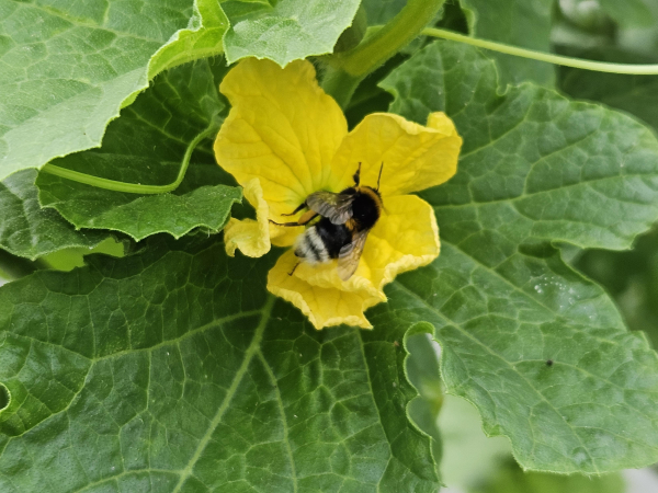 멜론 꽃에 앉아있는 뒤영벌의 모습