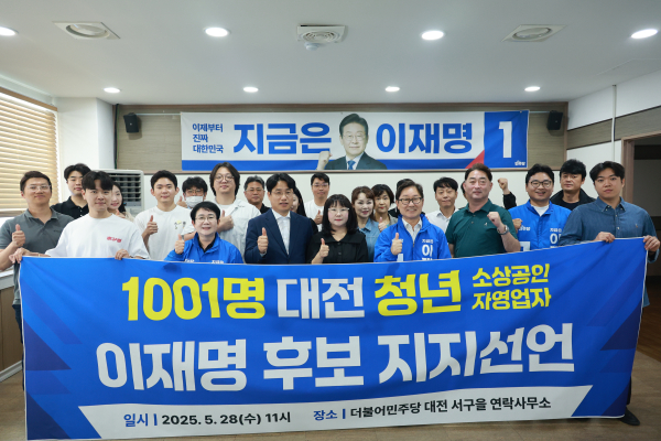 대전 지역의 청년 소상공인 및 자영업자 1,001명이 더불어민주당 이재명 대통령 후보에 대한 공식 지지 선언에 나섰다.