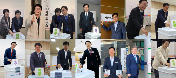 이날 국민의힘 소속 박희조 동구청장을 제외한 나머지 4개 구청장들도 사전투표에 참여했다. 민주당 정용래 유성구청장은 "적극적인 투표 참여로 민주주의를 회복하고, 더 좋은 미래를 함께 만들어 가자"고 했다.