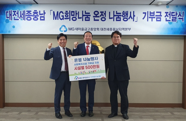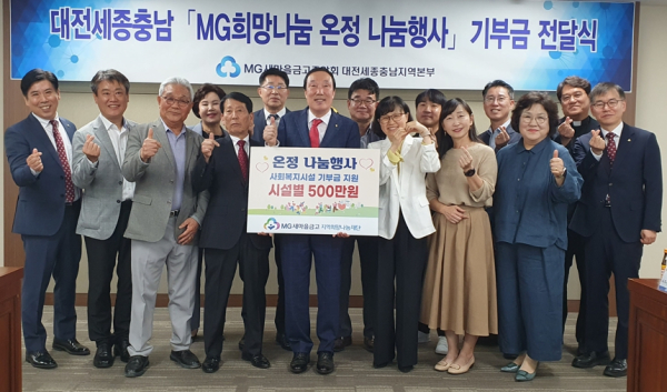 이번 기부금 전달식은 새마을금고 대전세종충남지역본부에서 진행되었으며, 새마을금고 지역이사장들과 지역본부장, 그리고 대전세종충남지역 6개 수혜기관이 참석하여 총 3,000만원의 기부금이 전달됐다.