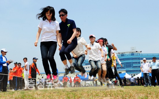충남체육회의 협조를 받아 진행될 1부 체육대회에서는 단체줄넘기와 줄다리기, 3인4각 릴레이, 훌라후프 돌리기 등이 열렸다. 특히 3인4각 릴레이와 훌라후프 돌리기에는 도청 직원 가족들이 함께 참가해 즐거운 한때를 보냈다.