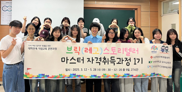 이번 과정은 사업의 효과성을 높이기 위해 2개 반으로 운영하였으며, 참여한 29명의 훈련생 전원이 수료와 자격증을 취득하는 성과를 거두었다. 특히 2학년 훈련생들은 ‘브릭스토리텔러 마스터 1급’ 자격을 취득하고, 배부된 브릭 교구를 활용해 논산시 소재 보육생활시설, 사회복지시설 등에서 주기적으로 교육 봉사 활동을 펼칠 예정이다. 이는 지역 인재의 수도권 유출을 방지하고, 지역 정착을 위한 정주 여건을 마련하는 데 기여하는 사회공헌형 프로젝트로 주목받고 있다.