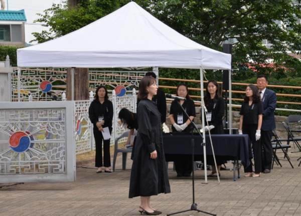 특히, 대한민국 건국훈장 독립장을 추서받은 독립유공자 고(故) 백운한 선생의 후손인 이현 학생(세종고 3학년)이 이해인 시인의 ‘우리 모두 초록빛 평화가 되게 하소서’를 낭독하여 숭고한 희생의 의미를 되새기는 시간을 가졌다.