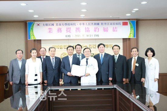 충남대학교병원(원장 송시헌)은 지난달 31일 행정동 3층 세미나실에서 상호간의 우호협력과 학술교류 관계를 촉진하기 위해 중국 목단강 시민병원과 협약식을 개최했다.