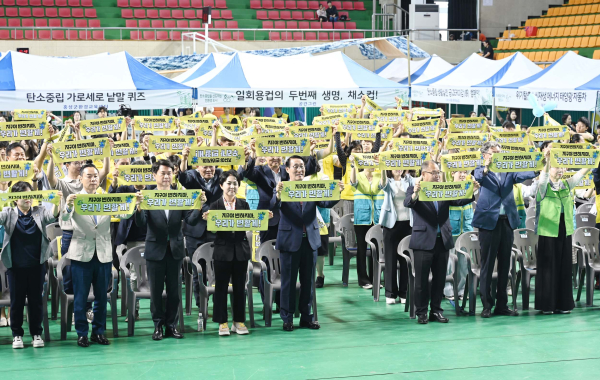 이날 이용록 홍성군수는 탄소중립 실천 선언문을 낭독하고, ‘지구야 변하지마, 내가 변할게!’라는 슬로건을 외치며 탄소중립 실현의지를 표현하는 퍼포먼스를 진행했다.