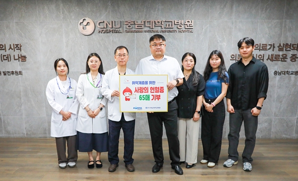 [충청뉴스 이성현 기자] 충남대병원은 코레일테크㈜가 직원들이 자발적으로 헌혈에 참여해 모은 헌혈증 65매를 기증했다고 17일 밝혔다.