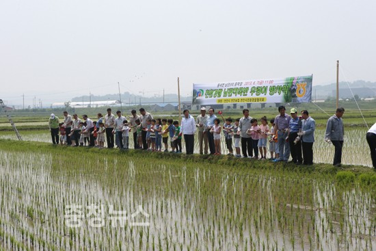 이날 행사는 성무용 시장과 농업관련 기관·단체 대표, 주민, 학생 등 200여명이 참여해 41.4ha의 논에 2700kg의 우렁이를 방사하며 친환경농업의 확산 의지를 다졌다.