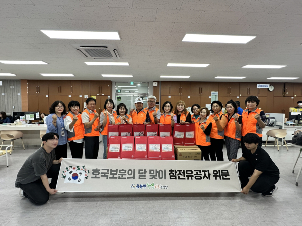 한편, 아산시 음봉면 행복키움추진단(공동단장 이정성, 이의천)은 지난 25일 음봉면 인적안전망 특화사업 ‘호국보훈의 달 맞이 참전유공자 위문 행사’를 진행하여, 보훈처에 등록된 음봉면 거주 참전유공자 56명에게 음봉면 행복키움추진단이 안부 확인 및 위문품을 전달했다.