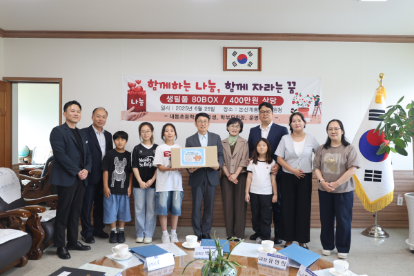 [충청뉴스 논산 = 조홍기 기자] 논산계룡교육지원청(교육장 박양훈)은 지난 25일(수), 논산내동초등학교 학생회와 학부모회로부터 ‘자원순환 기부 프로그램’과 연계한 기부 물품 꾸러미를 전달받았다.