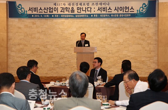 대전상공회의소(회장 손종현)는 13일 오전 유성호텔 3층 킹홀에서 ‘서비스산업이 과학을 만나다: 서비스 사이언스’를 주제로 ‘제157차 대전경제포럼 조찬세미나’를 개최했다.