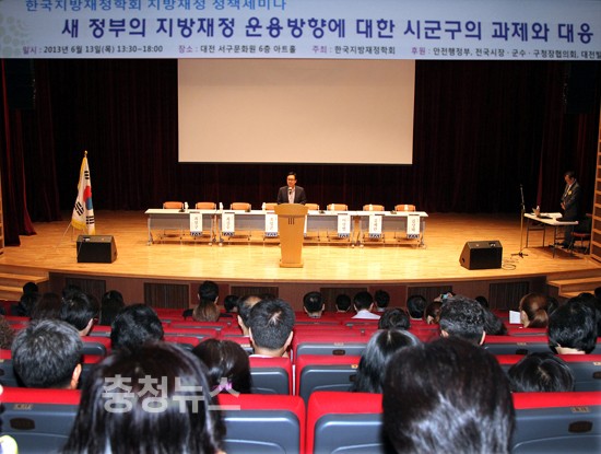 전국시장․군수․구청장협의회(사무총장 박환용 대전서구청장)와 한국지방재정학회는 13일 대전서구문화원에서 '새정부의 지방재정 운용방향에 대한 시군구 과제와 대응 : 자치구 지방재정조정제도의 과제와 개선방안'이라는 주제로 재정정책 토론회를 개최했다.