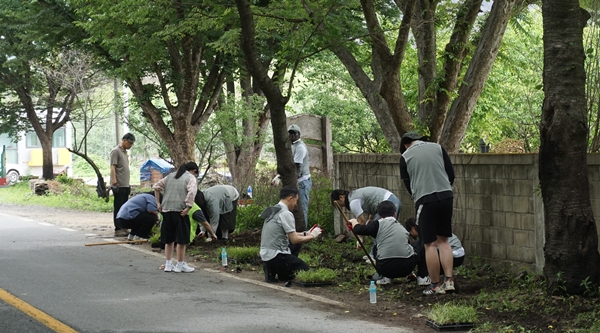 봉사단원들은 구계교회(담임목사 강정구)가 진행 중인 사업(화단조성)에 동참했으며 직접 구매한 모종을 심는 작업을 통해 봉사단원들은 화단 조성에 힘을 모았다.