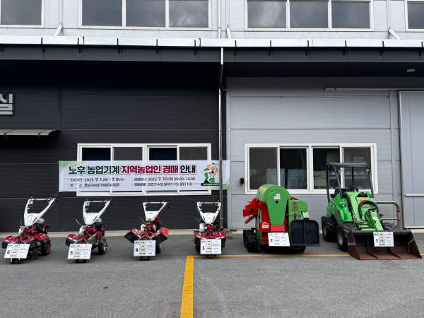 경매 대상은 보행관리기 4대와 콩탈곡기 1대, 스키드 스티어 로더 1대 등 총 6대이며, 대상 기계는 오는 9일까지 동남구 농업기계임대사업장에서 확인이 가능하다.