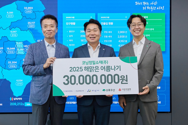한편, 코닝정밀소재(주)는 2018년부터 2024년까지 ‘해맑은 여름나기’ 사업을 통해 아산시 취약계층 아동 총 700명에게 누적 후원금 기준 2억 3천만 원 상당의 후원 금품을 지원한 바 있고, 이외에도 ▲저소득 세대 및 다문화 중고등학생의 학습비와 자격증 취득을 지원하는 ‘해맑은 미래’ ▲저소득 세대 아동의 겨울나기를 지원하는 ‘해맑은 산타’와 같이 다양한 사회공헌 활동을 전개하고 있는 모범기업이다.