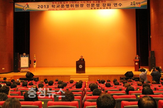 충남도교육청(교육감 권한대행 부교육감 전찬환)은 18일 공주대학교 백제교육문화관에서 도내 초․중․고․특수학교 학교운영위원장 690여명을 대상으로 ‘2013 학교운영위원장 전문성 강화 연수’를 실시했다.