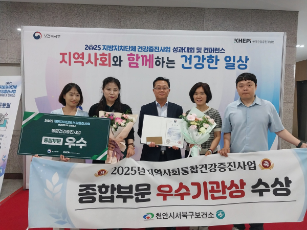 [충청뉴스 유규상 기자] 천안시 서북구보건소가 지난 3일 서울SC컨벤션에서 열린 보건복지부 주관 ‘지방자치단체 통합건강증진사업 성과대회’ 종합부문에서 우수기관으로 선정됐다