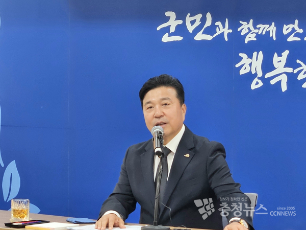기자회견 중인 최재구 예산군수 모습 / 사진 박영환 기자