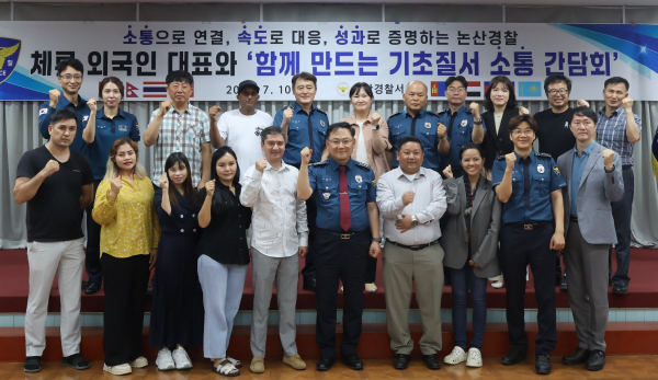 [충청뉴스 논산 = 조홍기 기자] 논산경찰서(서장 유동하)는 10일 11시 경 논산지역에 체류하고 있는 네팔, 태국, 몽골, 베트남 등 8개국 외국인 대표자들과 기초질서 등 법규 준수를 위한 ‘경청·소통 간담회’를 개최하였다.